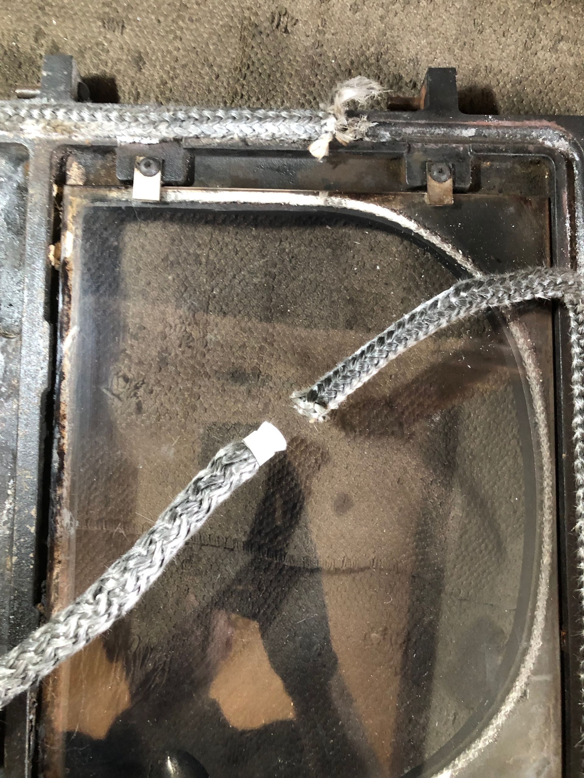 In this example a customer had tried to replace the door rope themselves. They had bought some new rope online but they were unaware that rope comes in a wide variety of sizes as well as hard and soft variants. The customer told me that since changing the rope they were unable to reduce the size of the fire even with the air controls fully closed.